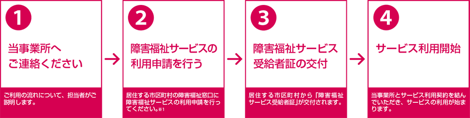 サービス利用までの流れは下記のようになります。まずは当事業所へご相談ください。
